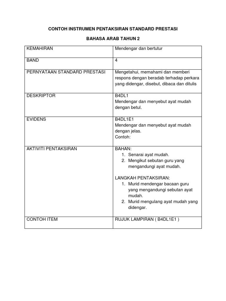 Contoh Instrumen Pentaksiran Standard Prestasi Bahasa Arab Tahun 2 Pdf
